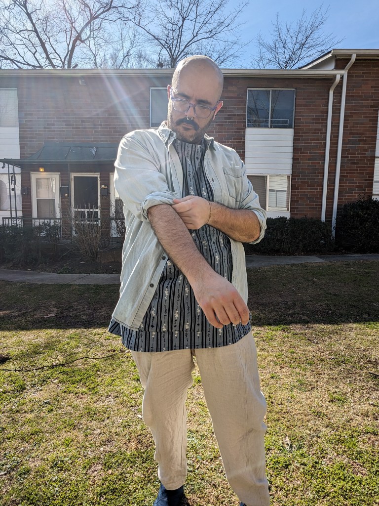 - The pants I’m wearing are Clyde pants I picked up in an online sample sale.